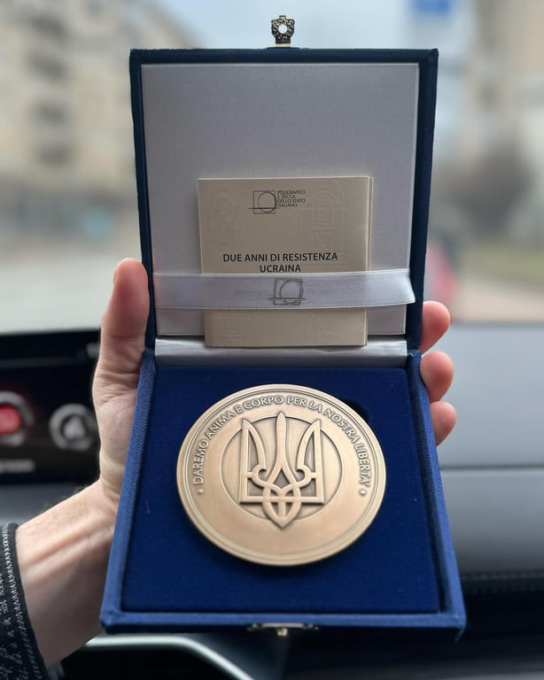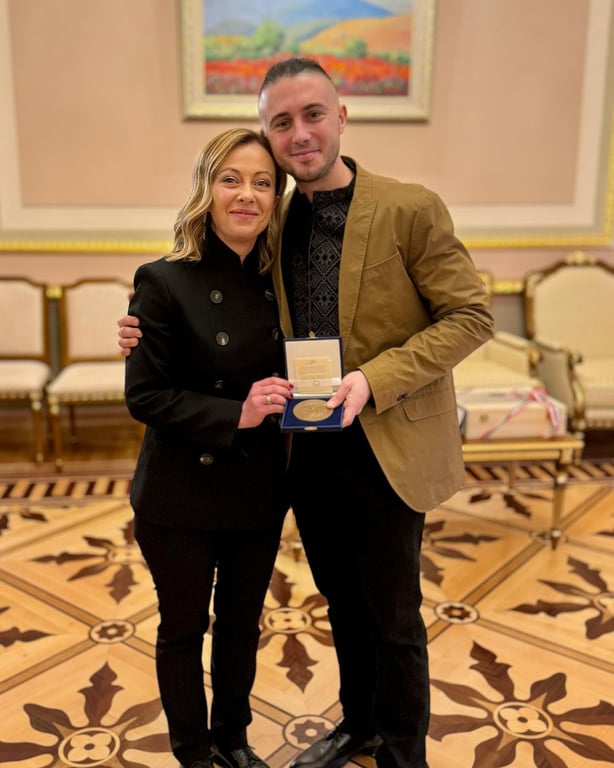 Натомість Джорджа Мелоні нагородила "Антитіла" почесною відзнакою з італійським написом, який перекладається як "Ми віддаємо душу й тіло за нашу свободу".